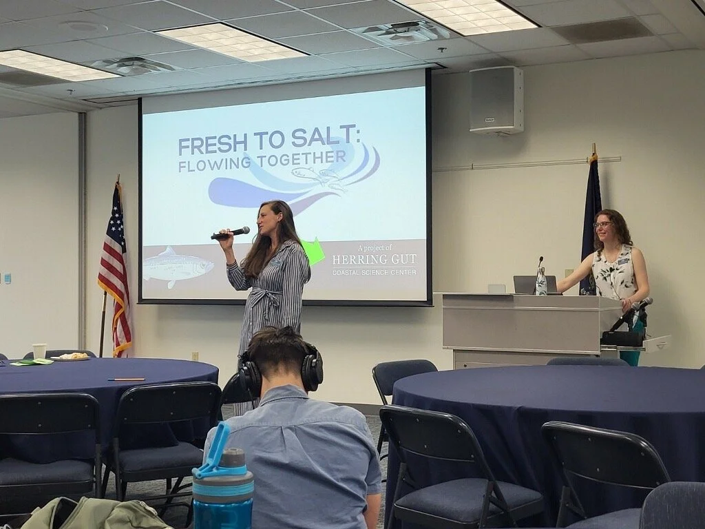 Educators Kerianne Gwinnell and Alaina Zyhowski presented at the Maine Environmental Education Association conference in Belfast last week. They engaged the audience about the watershed education project: Fresh to Salt: Flowing Together. Teachers and environmental educators learned how the project integrates classroom and field experiences where students 'think' and 'do' like scientists and engineers. Attendees also experienced the habitat fragmentation activity about challenges alewives face on their migratory journey between fresh and salt water.