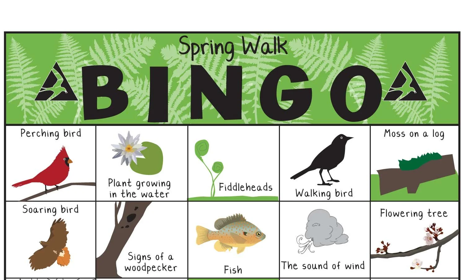 Mass Audubon’s Spring Bingo pages are a great way to bring younger kids outside into nature and encourage observations of the changes that spring brings to your backyard.